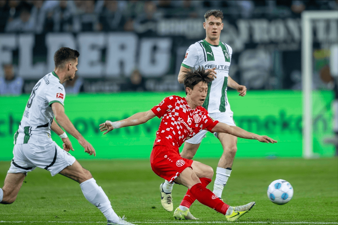 上半场第39分钟,32岁韩国球星李在城送出妙传,内贝尔先拔头筹帮助美因茨队取得领先。